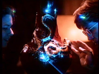Lila Reed (Kari Wuhrer) gets a work study assignment at Dr. Ian Burton's (Eric Roberts) psychometry lab. Ian has a cool CD-player that plays sounds from Chang-vase. Lila hears voices and is sensitive to radar signals so she must record the impressions. Ian gives Lila items and Lila must use her skills to sense the vibrations and tell about the owner.